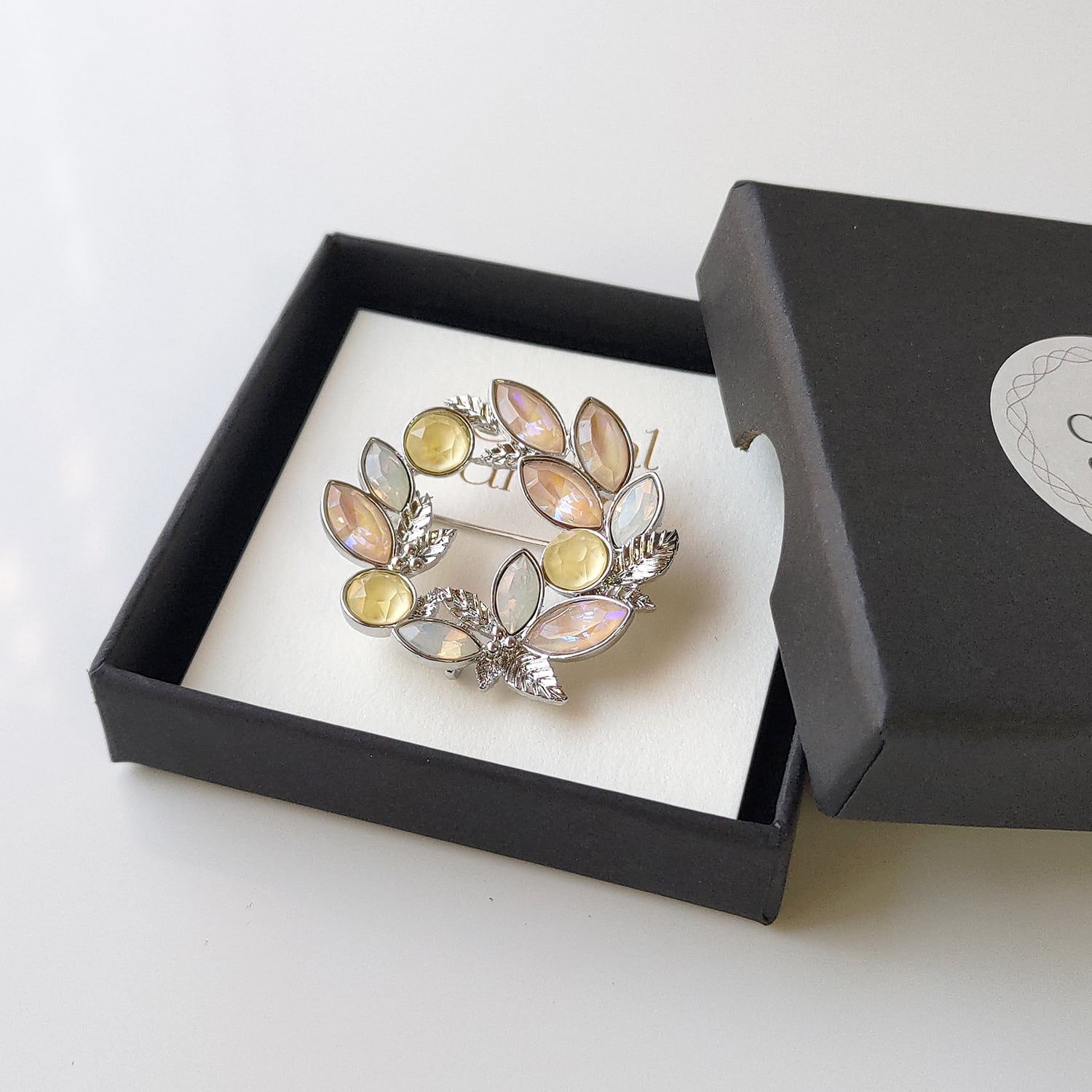 *ほどよい大きさですので複数のブローチと一緒に着けたり、胸元だけでなくスカーフやバッグ、ぬいぐるみなどに着けて楽しんでください。
