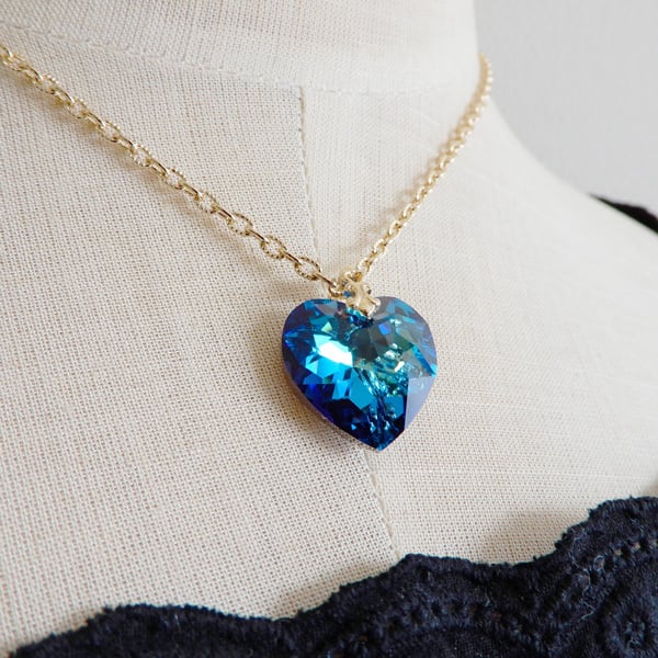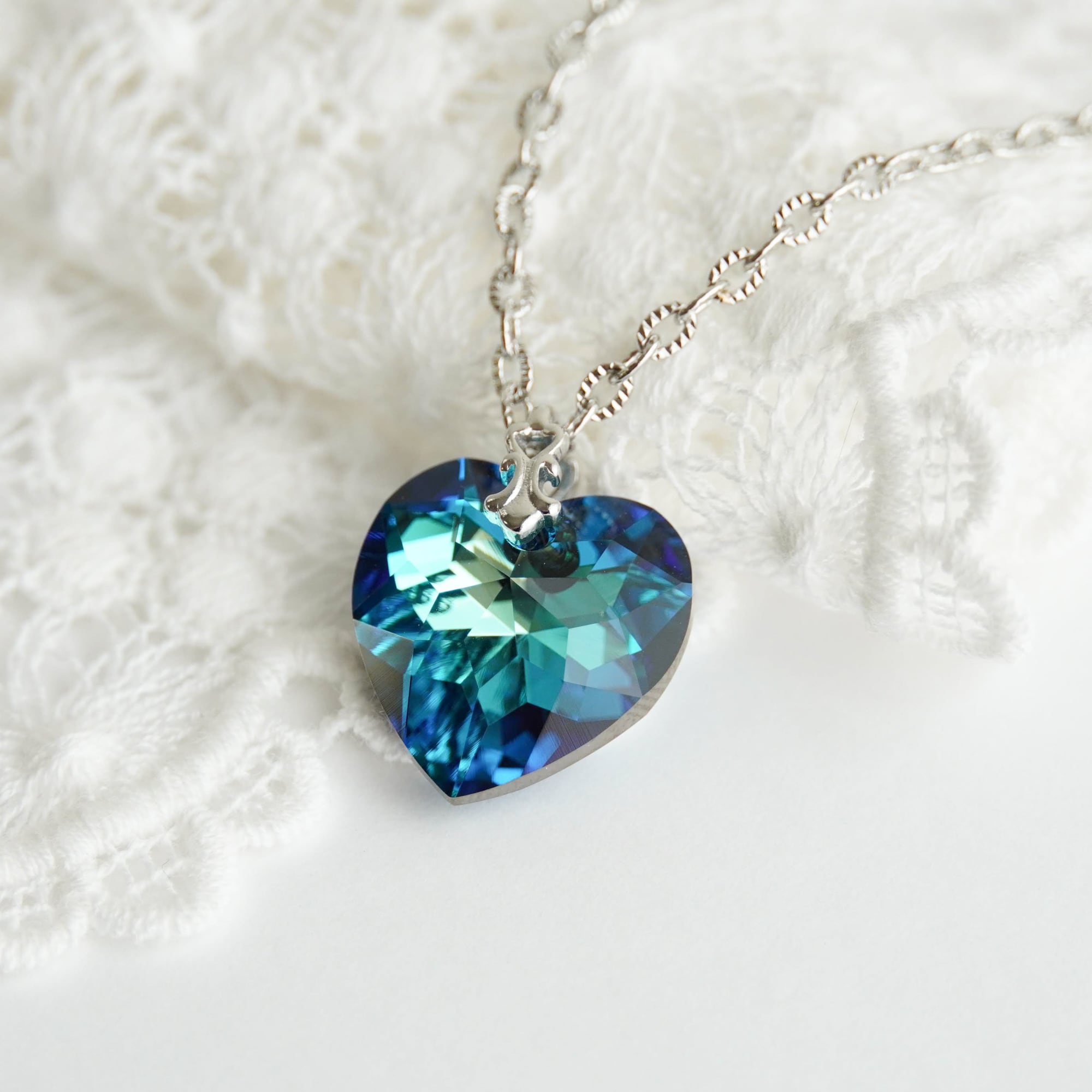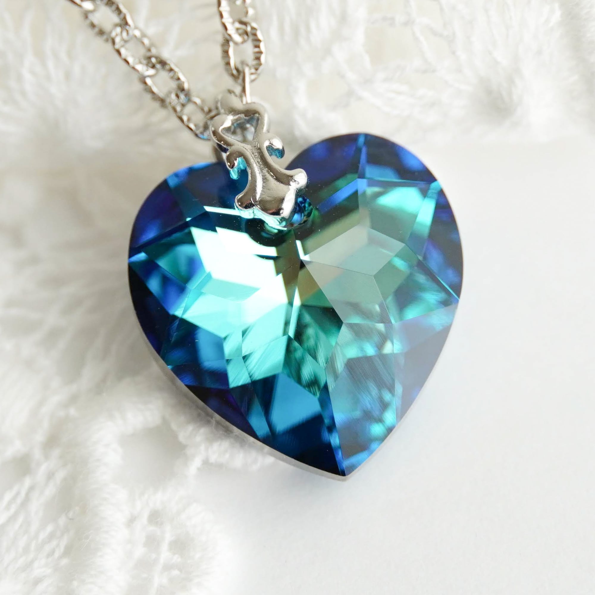 超大粒バミューダブルー♥18mm ふっくらハート クリスタル使用 ペンダントネックレス|青 アイドル 推し かわいい 大きい