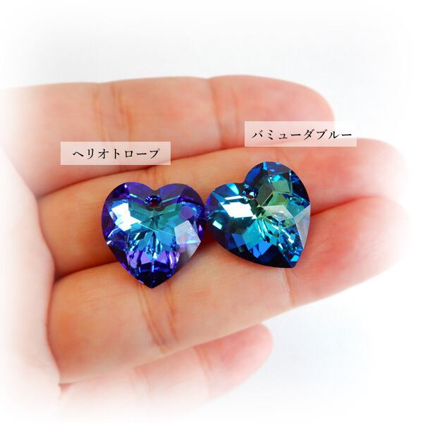 スワロ社のハートカットビーズは何種類かあり、よく見かけるのは6432番ですが、こちらは6215番というあまり流通していない型です。