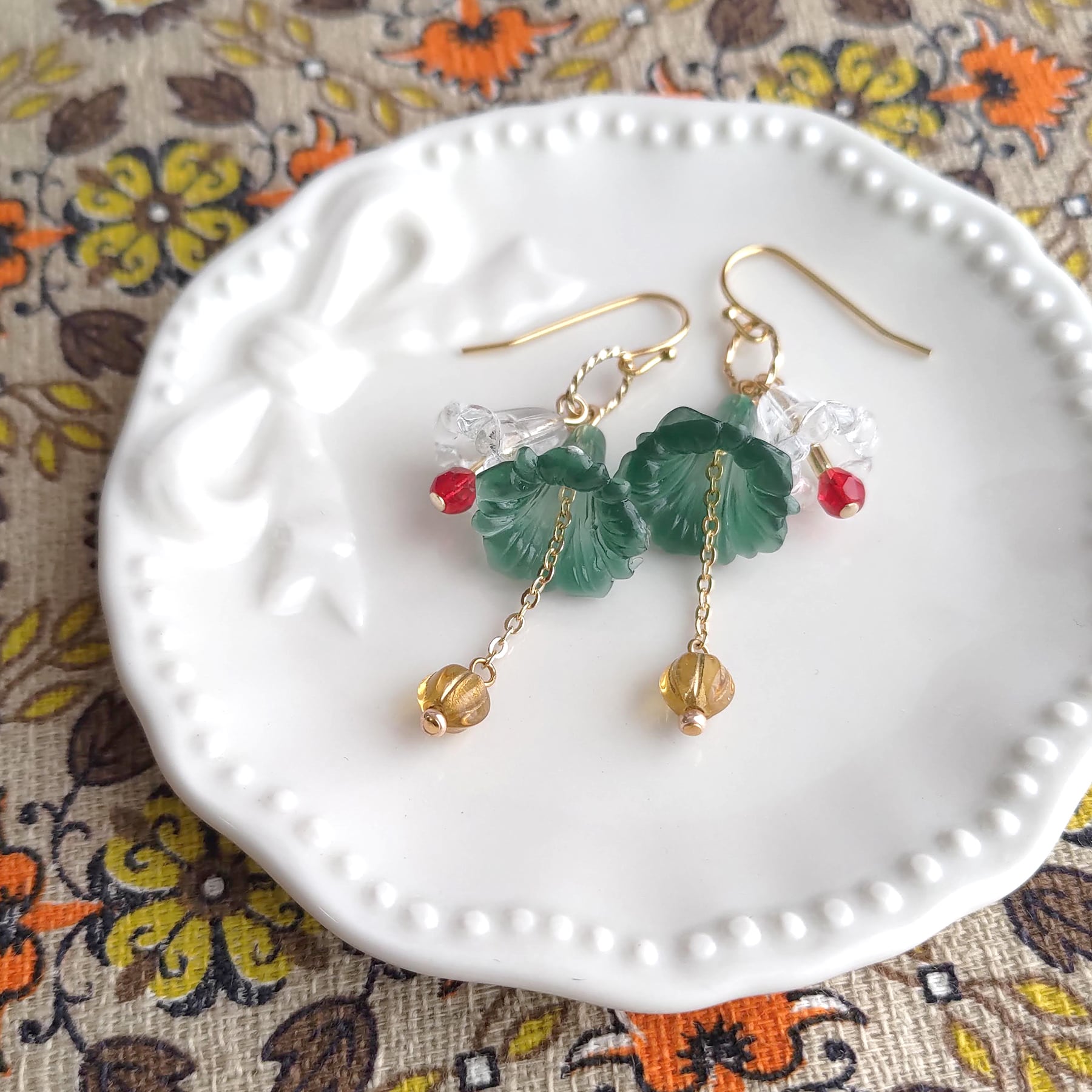 ひらひらスカートみたいなフラワービーズの耳飾り01【RETRON/レトロン】喫茶店 昭和レトロ