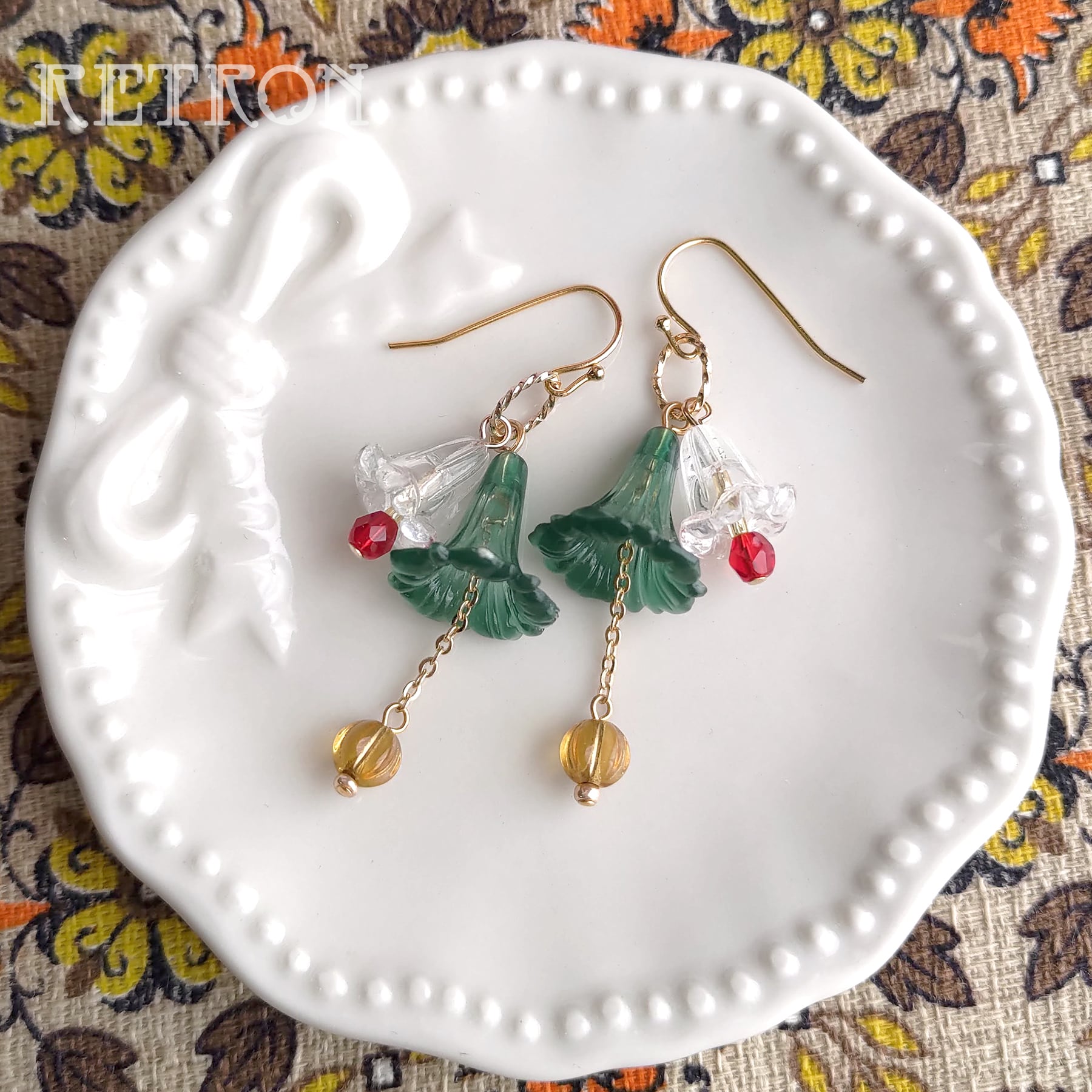 ビーズアクセ キラキラ アンティーク調 ヴィンテージ調 ガーリー 少女趣味 喫茶店 パーラー フラワーモチーフ メルヘン かわいい きれい ワンピース レース vintage ポップ 1960's 1970's 1980's 女の子 お母さん おばあちゃん プレゼント ギフト レトロン RETRON クリスタルドロップス