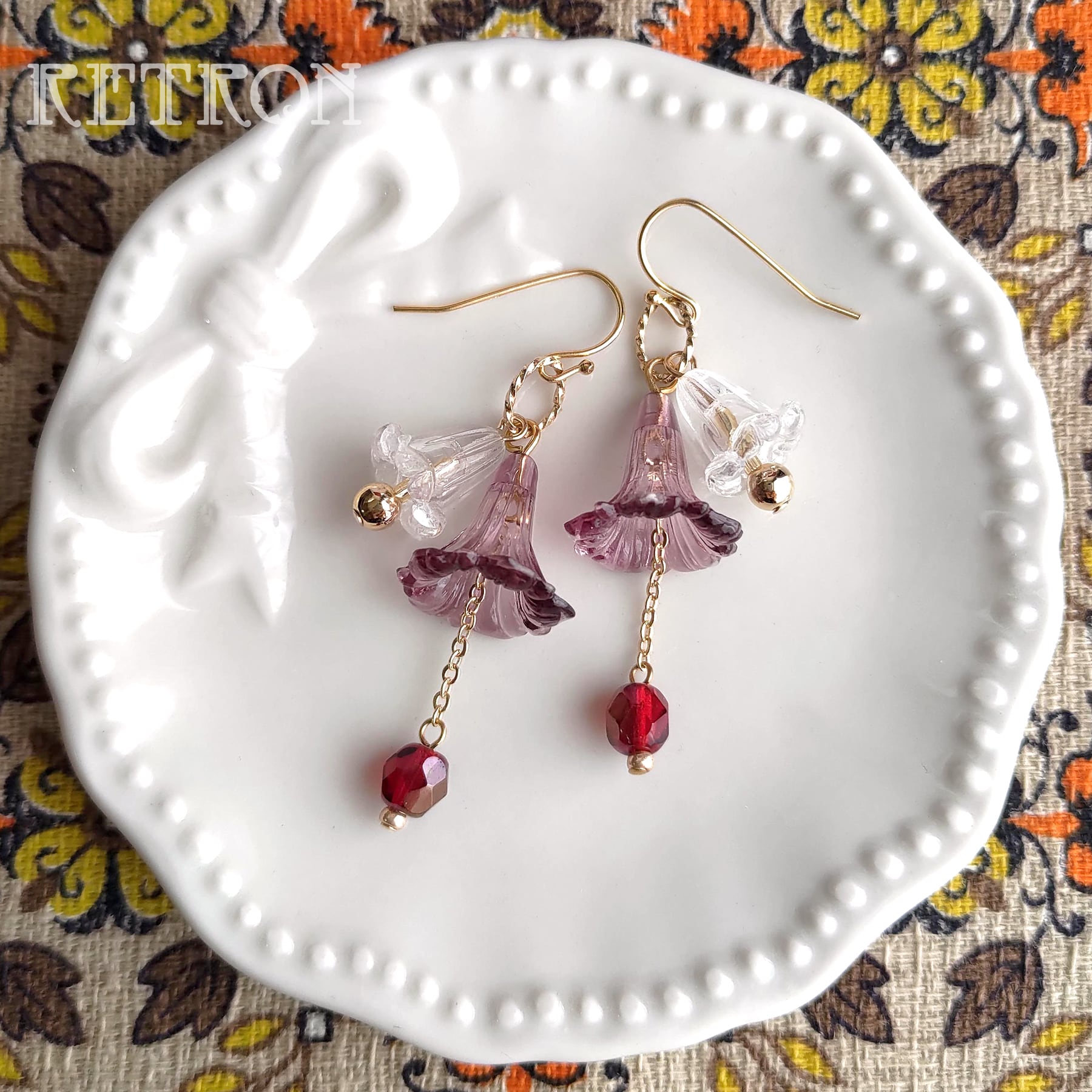 ひらひらスカートみたいなフラワービーズの耳飾り02【RETRON/レトロン】喫茶店 昭和レトロ