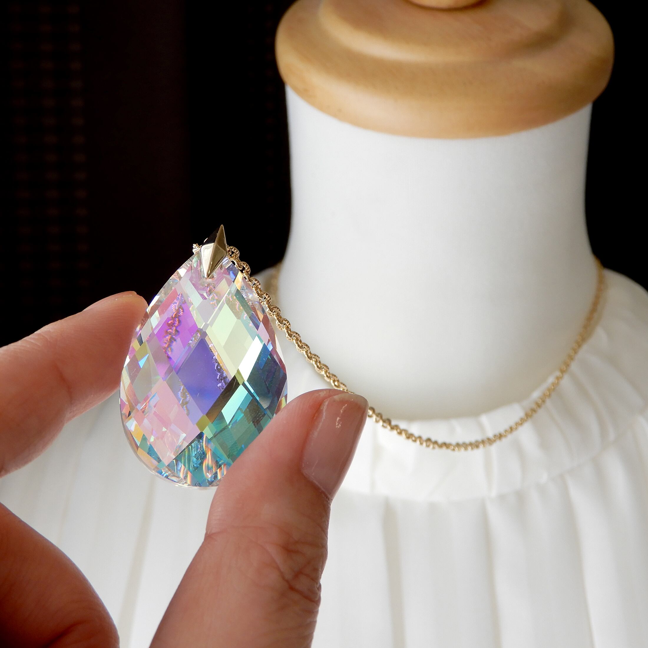 超大粒 プレシオサ・オーロラ シャンデリア クリスタル ガラス・ペンダント ネックレス