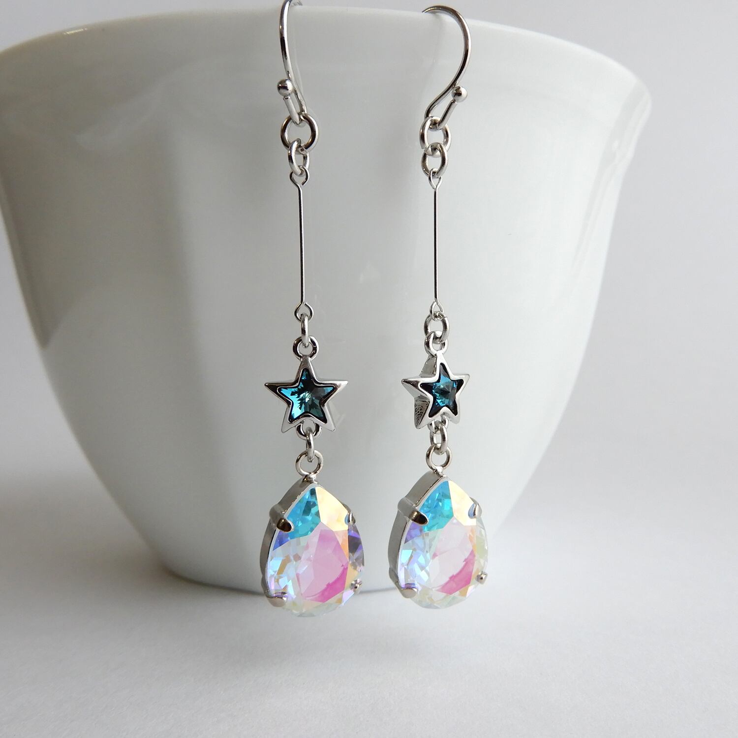 ★パーツ :オーストリア製高品質クリスタル(スワロ社製 ティアドロップ 14×10mm/スター 5mm)、銀色メッキメタルパーツ
