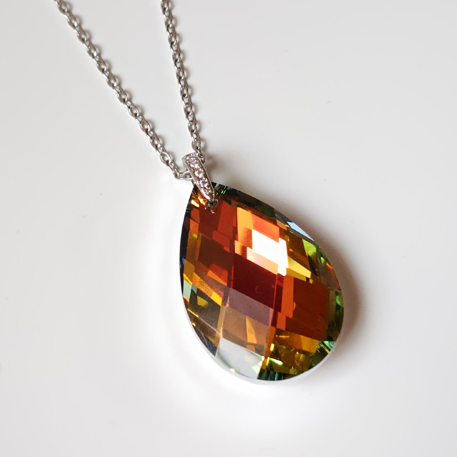 縦39mm、横25mm、かなり大きめのアーモンド型クリスタルでシンプルなペンダントをお作りしました。