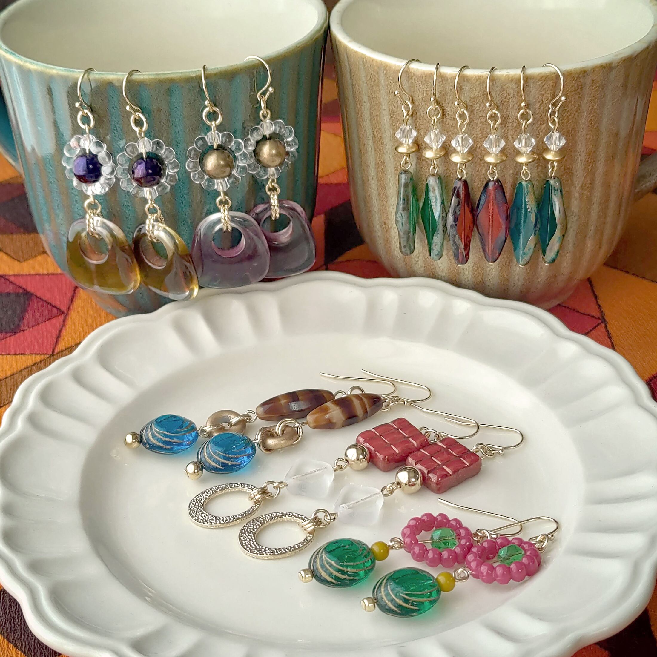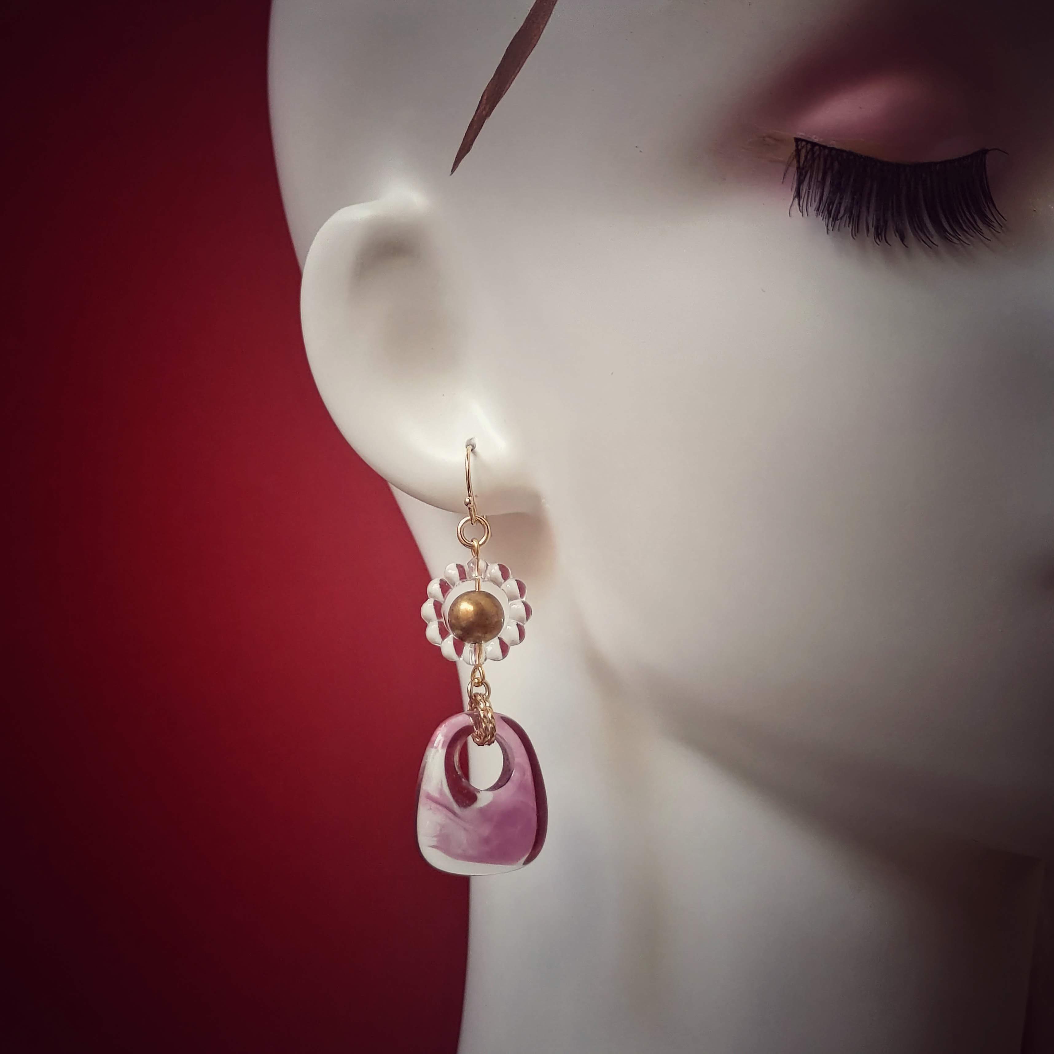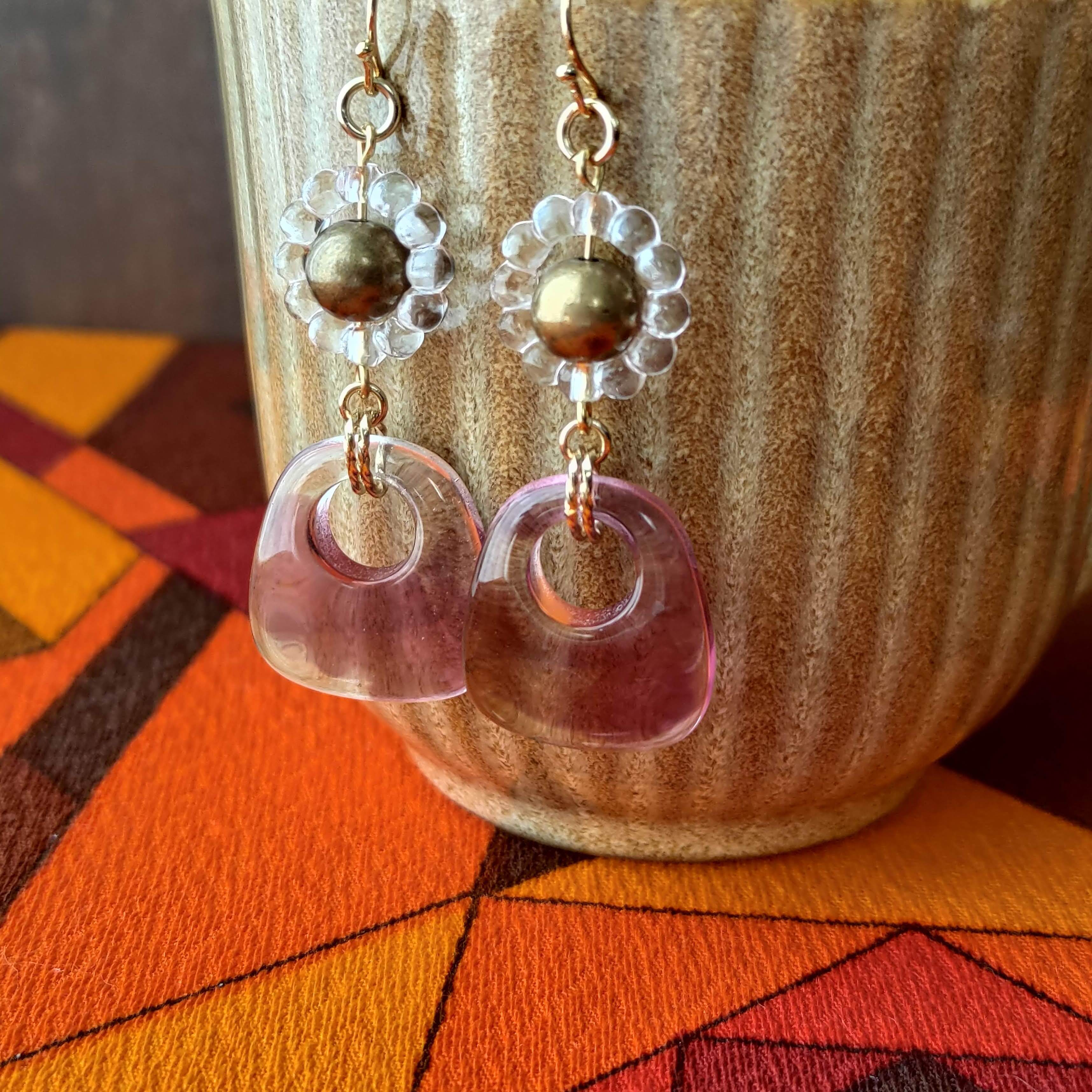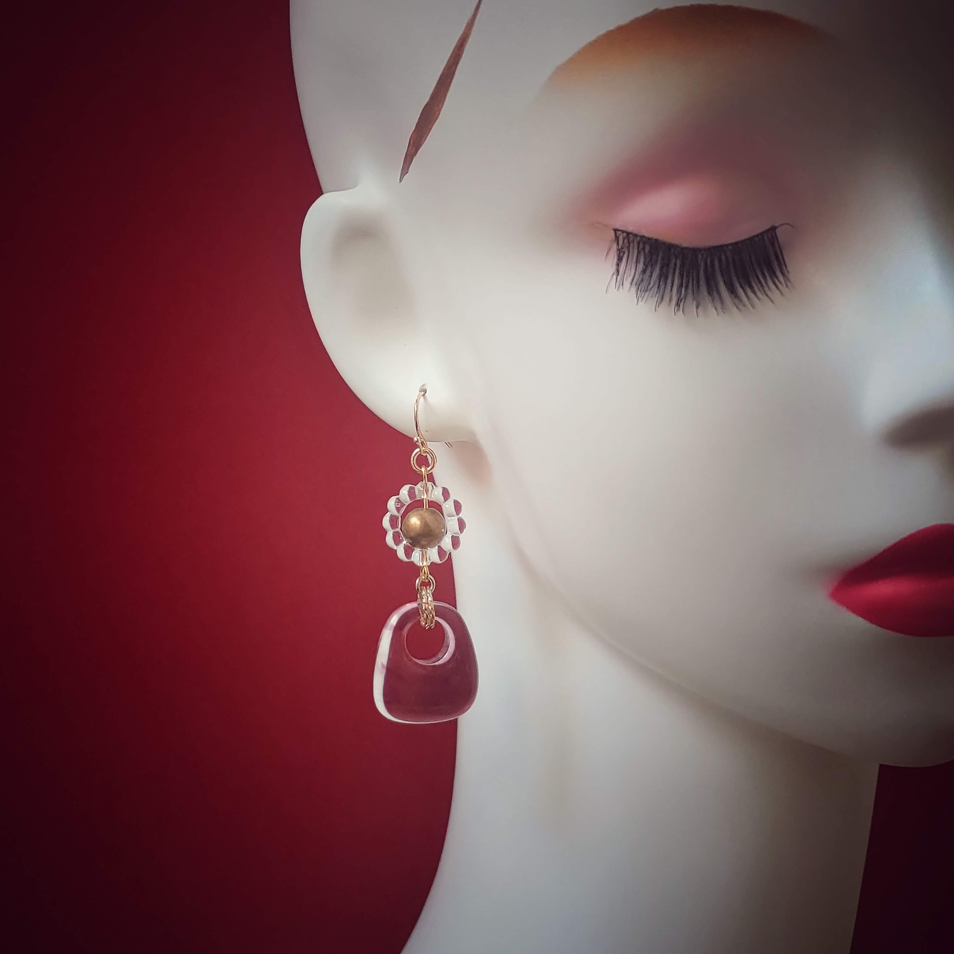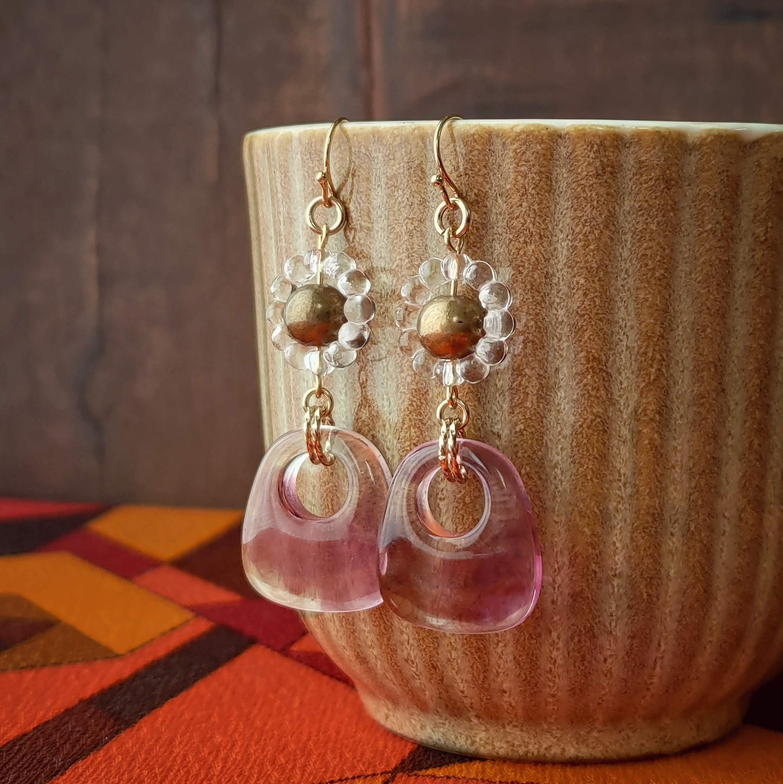 大ぶりピアス シック 古着 ガラス ビーズアクセ 昔の くすみカラー アンティーク調 ヴィンテージ調 vintage風 純喫茶 喫茶店 レトロポップ 1960's 1970's 1980's お母さん おばあちゃん プレゼント ギフト レトロン RETRON クリスタルドロップス