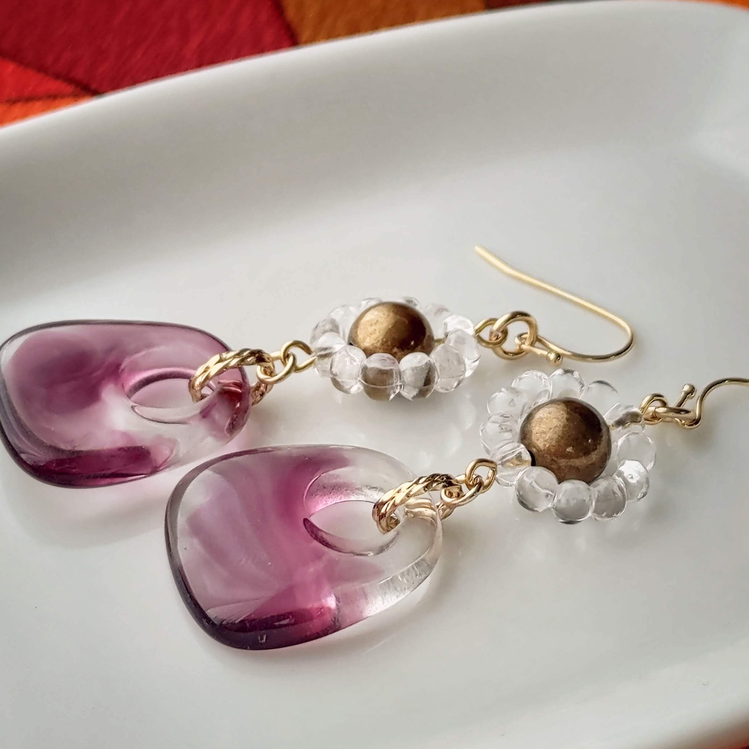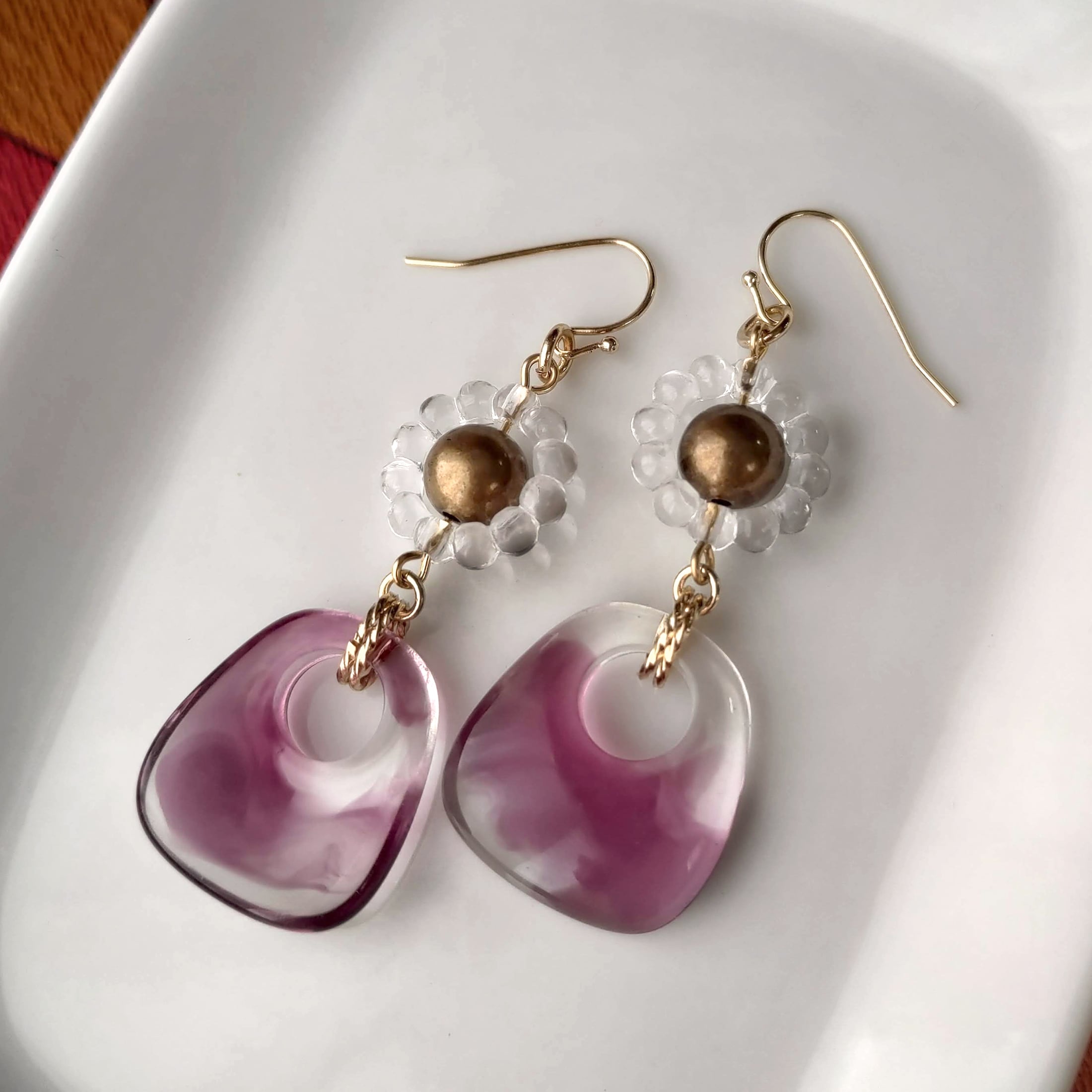 ぶどう色 アクリルフープのピアス(イヤリング)*レトロ喫茶002|レトロン RETRON ヴィンテージライク パープル