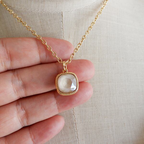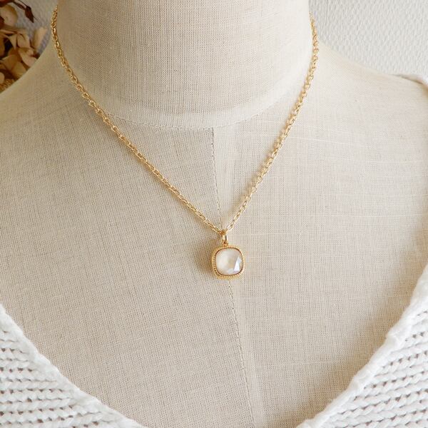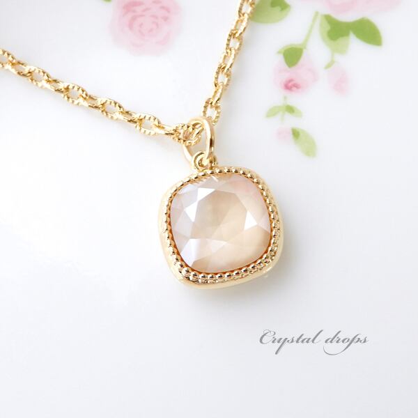 残わずか・アイボリー クリーム|ころんとした高品質 クリスタル シンプル一粒ペンダントネックレス|スワロ ナチュラル 北欧
